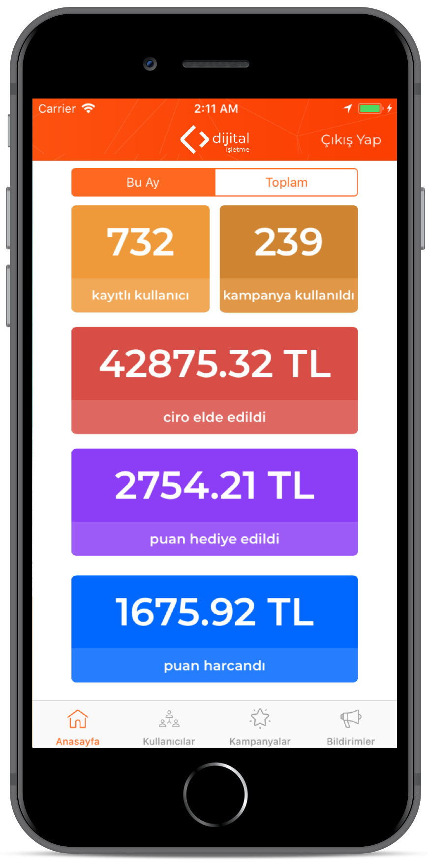 Tek bir yerden satışlarınızı kontrol edin, kampanyalar oluşturun ya da kullanıcılarınıza anlık bildirimler gönderin.