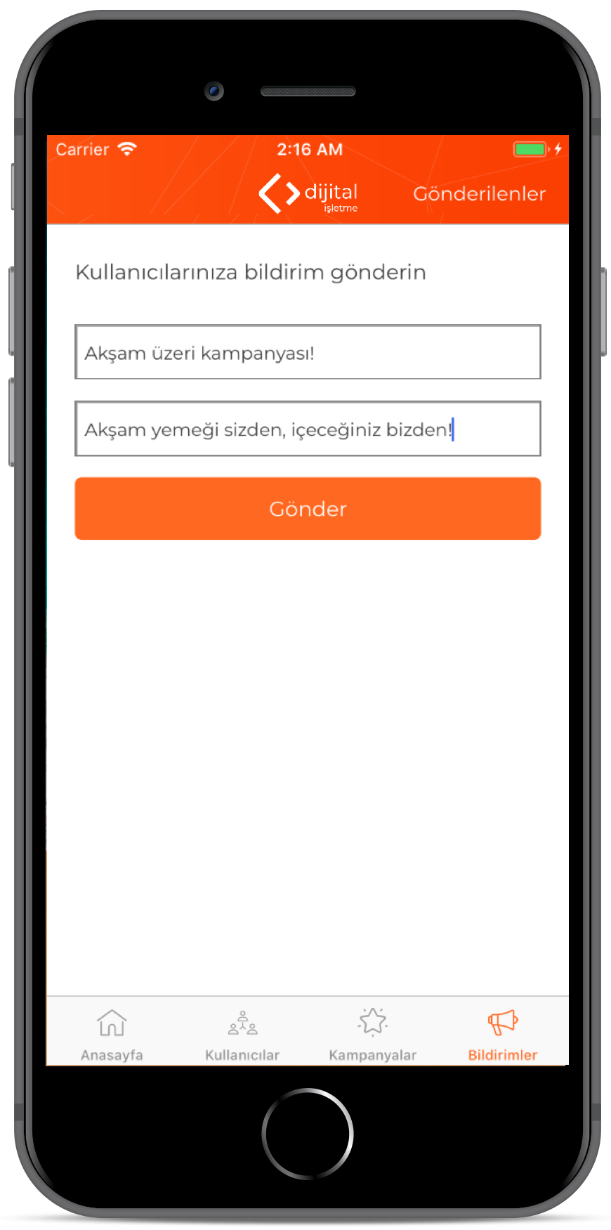 Size sunacağımız müşteri yönetim paneliniz aracılığı ile müşterilerinizi anında bildirim gönderebilir, onlara rahatlıkla ulaşabilirsiniz.